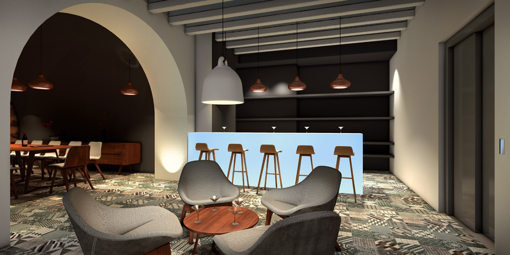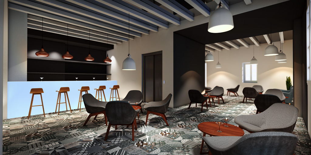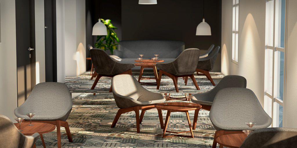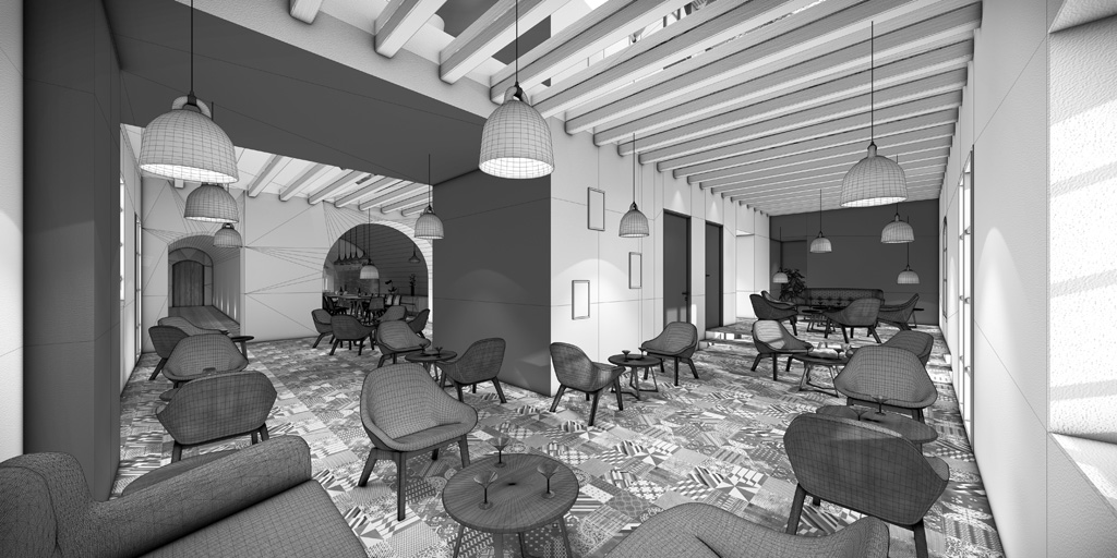 Réalisation de plusieurs illustrations d'intérieur et visites virtuelles. Réalisation de la modélisation 3D (mobilier et structure), création des