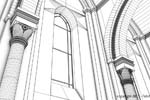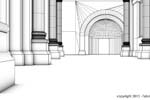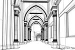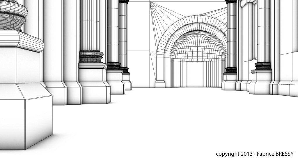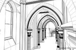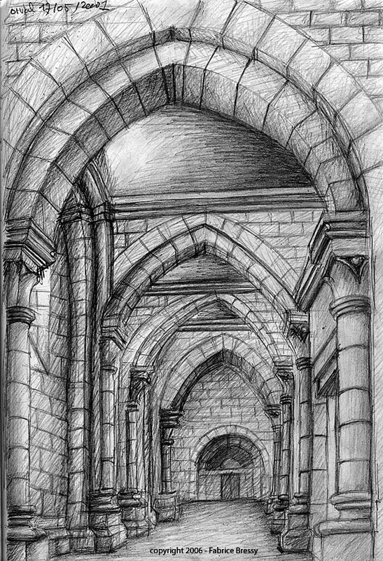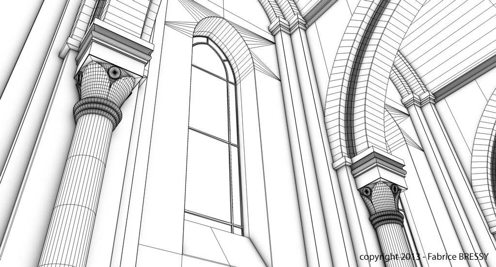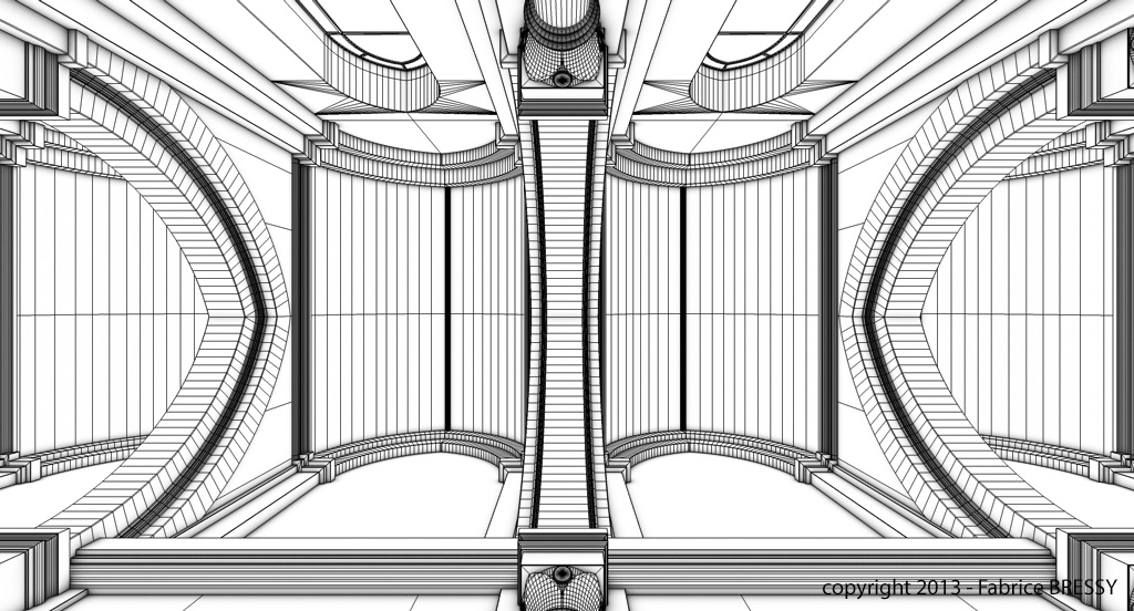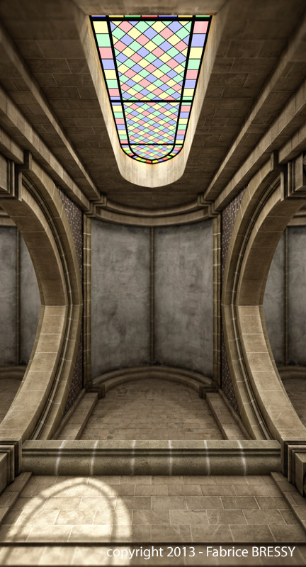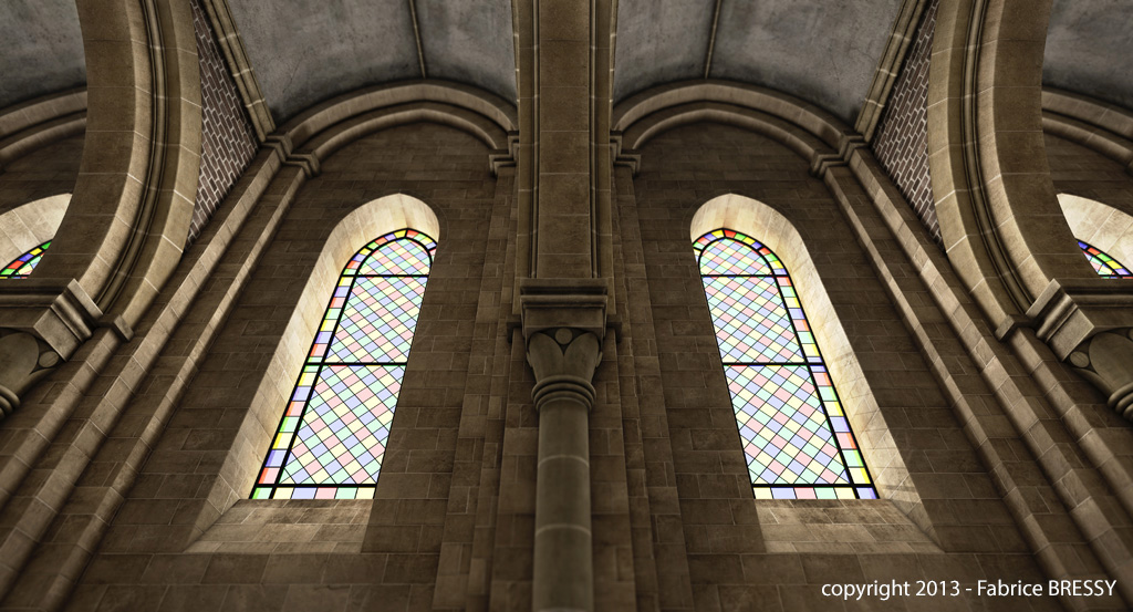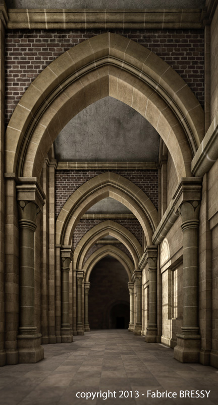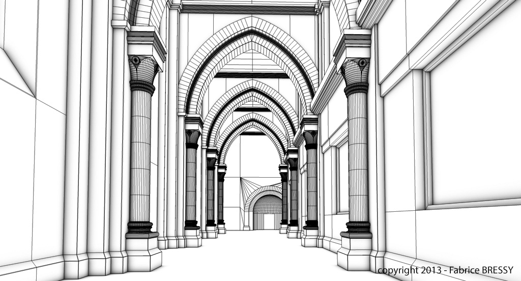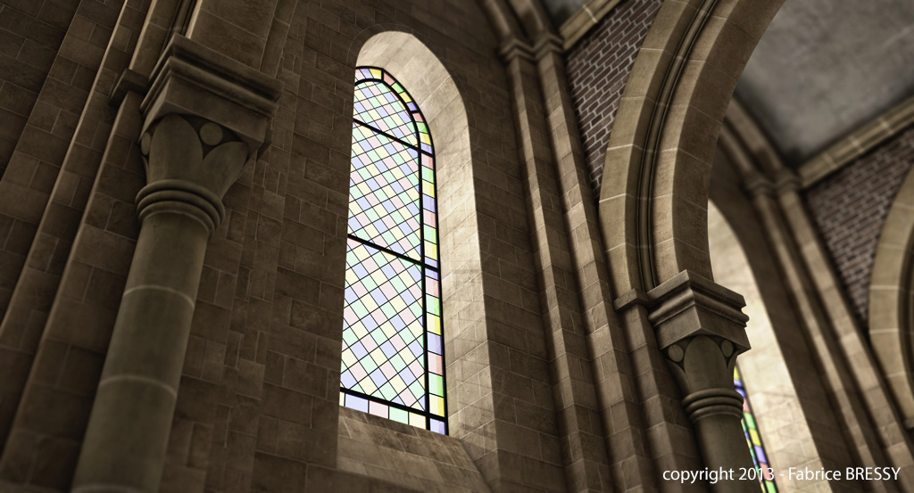 J'ai eu l'idée de modéliser cet intérieur à partir d'un dessin réalisé lors d'un séjour dans l'abbaye d'Orval (Belgique).