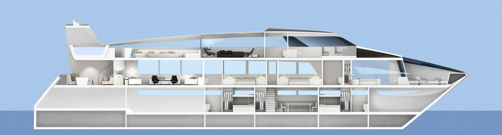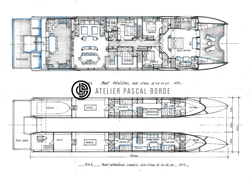 Réalisation d'illustrations d'un yacht de luxe pour le projet de l'atelier Pascal Borde. J'ai réalisé la modélisation d'après les plans papiers de l'architecte, les textures, le rendu et le montage photo final. L'ameublement a été modélisé par mes soins d'après les données techniques des fabricants.