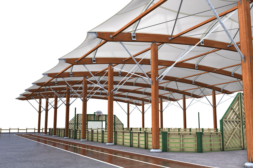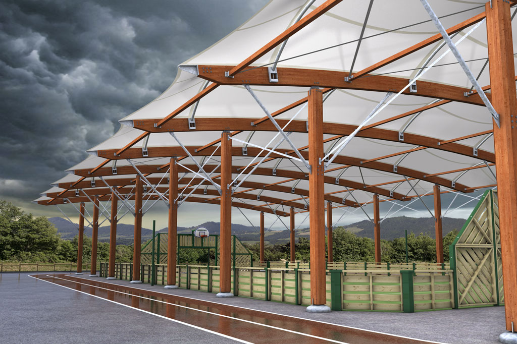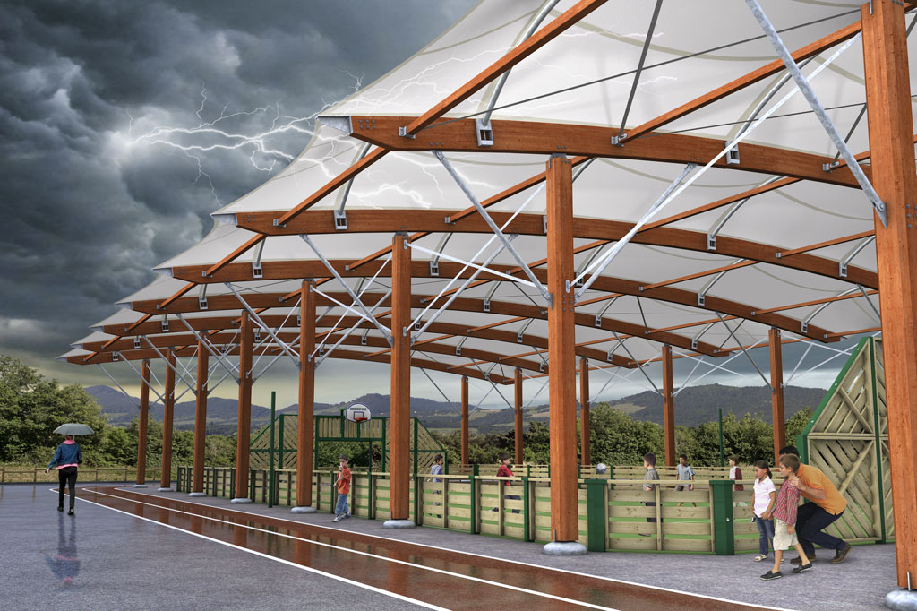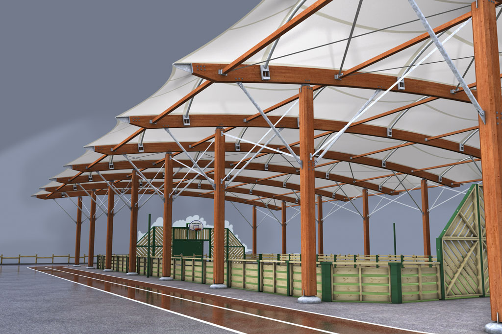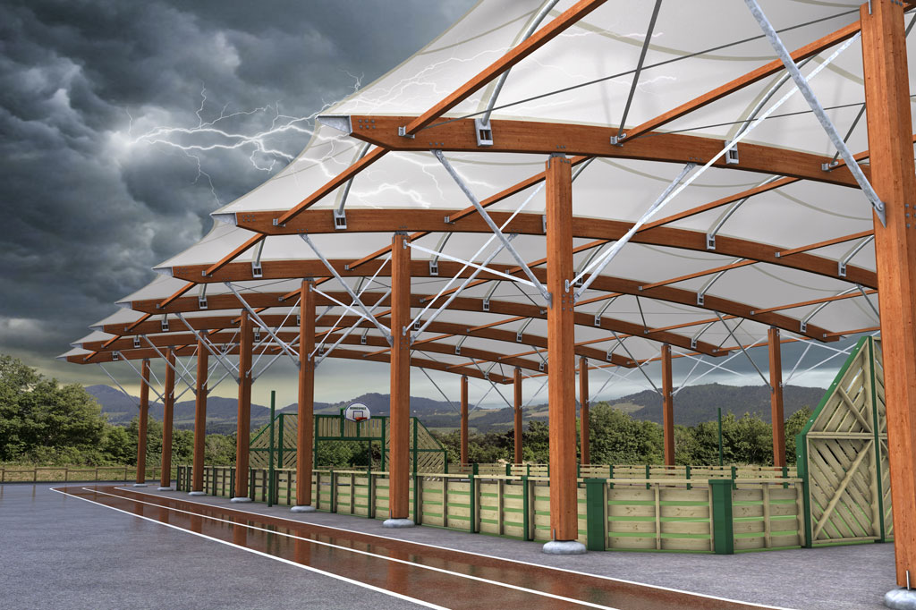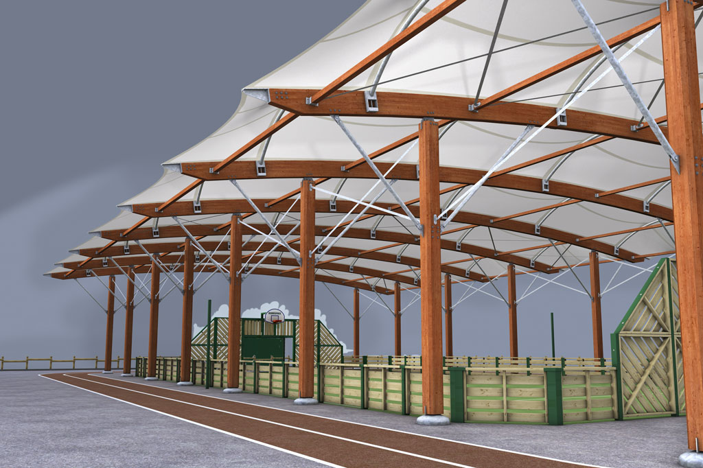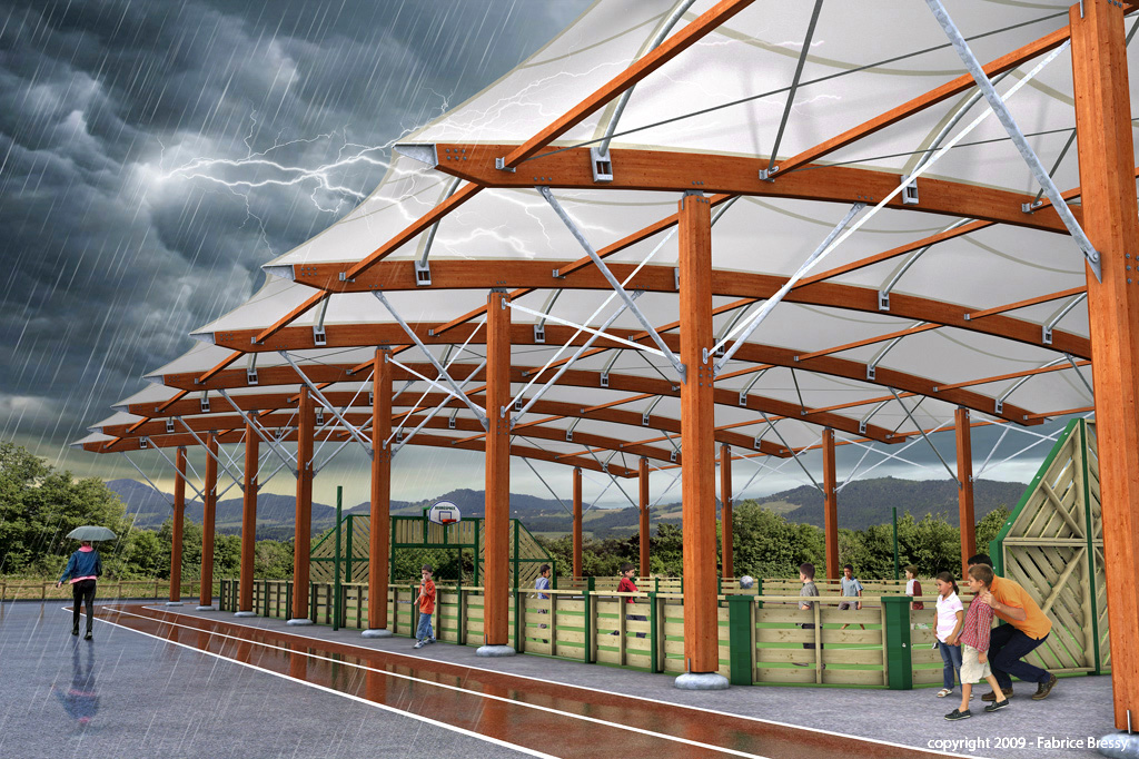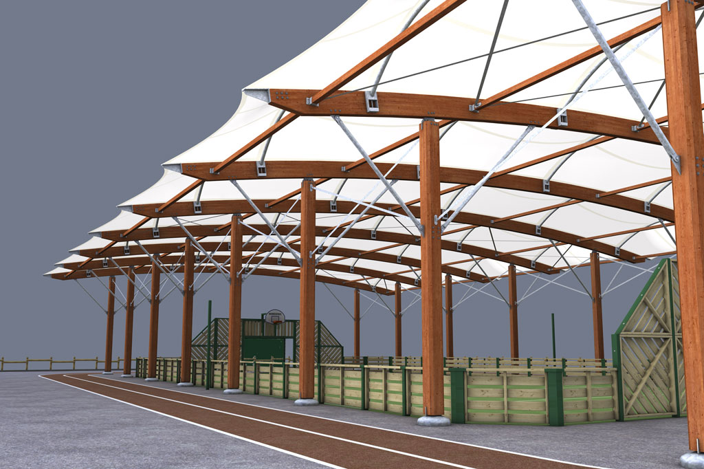 atouts majeurs de la structure, qui est de pratiquer une activité sportive extérieure tout en étant protégé des intempéries. J'ai réalisé la modélisation