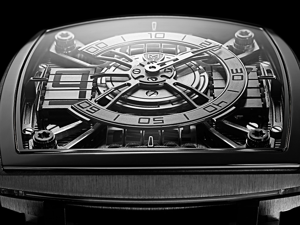 - la reconstitution des matières comme le métal brossé et la reconstruction des éléments constituant la montre.